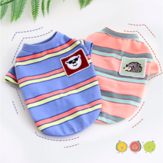 [banse] 귀여운 강아지 고슴도치 곰돌이 패치 스트라이프 티셔츠 옷, 블루