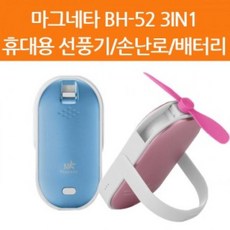 마그네타 휴대용 선풍기 손풍기 겸 손난로 핫쿨파워 3in1 멀티 휴대용 보조배터리 5200mAh BHC-52, 핑크