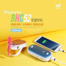 마그네타 휴대용 선풍기 손풍기 겸 손난로 핫쿨파워 3in1 멀티 휴대용 보조배터리 5200mAh BHC-52, 옵션 색상선택 핫쿨파워 5000mAh 충전식 손난로- 블랙