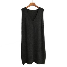 다둥이맘 브이넥롱니트 하프기장 베스트 조끼 여성 겨울 가을 와이드 루즈핏 털실 선드레스 나시