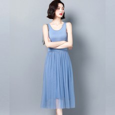 다둥이맘 슬리브리스톱 선드레스 여름 하프기장 끈나시 슬립 돌돌이 민소매 빅사이즈 글리터 레이스 이너 반팔셔츠
