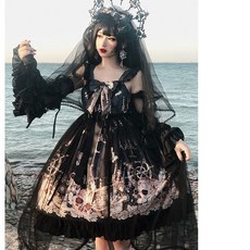 글로벌룬 공주스커트 전액 LOLITA 팔토시 쉬폰 망사, 블랙 팔뚝 한쌍 (포함안함 원피스 )
