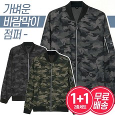 [1+1]남성 간절기 캐주얼 카모플라쥬 아우터 바람막이 블루종 집업 점퍼 2종세트 무배