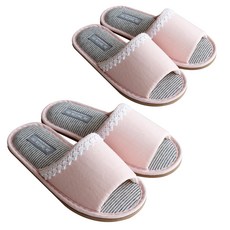iPSTO 실내화 린넨 남성 여성 여름 실내 슬리퍼 거실화, 38호(230~240mm), 핑크