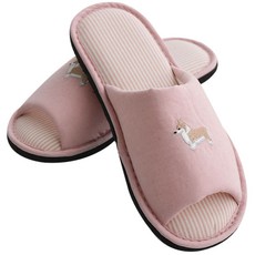쓰임 여성용 웰시코기 자수 슬리퍼, 핑크