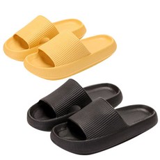 캘리웨이브 카롱 에바 실내 슬리퍼 2개+매직후크2개 세트 층간소음 방지 여성 남성 커플 푹신한 사무실 실내 슬리퍼 거실화 욕실화 예쁜 거실실내화 세트, 옐로우36+블랙44