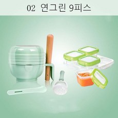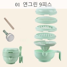 DALIN 보조공구 갈아서 그릇틀 과일 진흙을 수동식 갈아서 아기에게 야채 음식 물고기 세트를 만든다 XT08 A8, 01 연그린 9피스