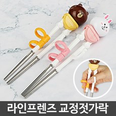 이유식용품 유아 아기 라인프렌즈 교정용 수저 연습용 교정젓가락, 라인프렌즈교정젓가락브라운