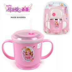 후니스토어 쥬쥬 흘림방지 스텐 양수 빨대컵 이유컵 아기컵 유아 스파우트컵