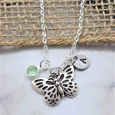 맞춤형 나비 목걸이-여성 어린이 및 소녀를위한 나비 보석-나비 테마 선물 아이디어-맞춤 탄생석 및 초기