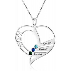 개인화 된 어머니 이름 하트 목걸이 3 시뮬레이션 된 탄생석 보석 3 명의 어린이 이름을 가진 어머니의