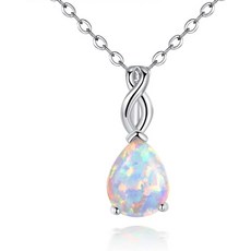 OPALTOP 18K 화이트 골드 도금 8x10MM 눈물 10 월 탄생석 오팔 펜던트 목걸이 17.5 인치 (흰색)
