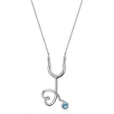 POPLYKE 스털링 실버 청진기 목걸이 탄생석 간호 테마 펜던트 목걸이 간호사 의사 여성 여자 의료 학생