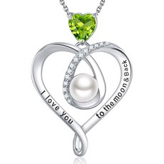 8 월 탄생석 녹색 페리도트 목걸이 사랑 심장 화이트 진주 펜던트 목걸이 십대 소녀 생일 선물 달 사랑합