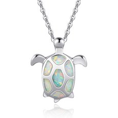 Fancime 925 스털링 실버 화이트 오팔 바다 거북 펜던트 목걸이 건강 장수 탄생석 섬세한 보석 여성 여자