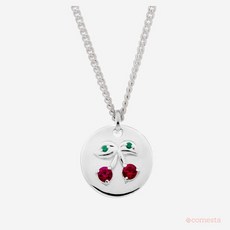 꼼에스타 반짝 체리 펜던트 탄생석 실버 인그레이빙 목걸이_74-AMSN01