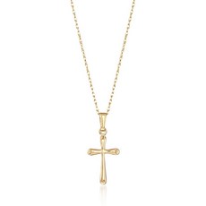 탄생석 로스 시몬스 어린이 14 캐럿 옐로우 골드 크로스 목걸이