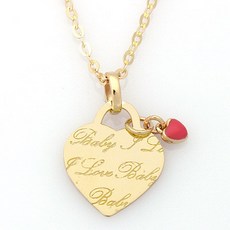 아가골드 14K 체인포함 뉴하트에나메달 미아방지목걸이 돌선물 아기백일선물 하트 BP943, 단품