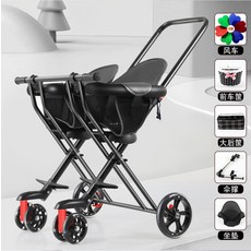 쌍둥이 트라이크 2인용 연년생 휴대용 유모차 2인, 블랙