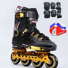A602099 인라인스케이트 성인 Professional skates adult flat shoes roller shoes adult, Black gold does not flash wheel + protective gear