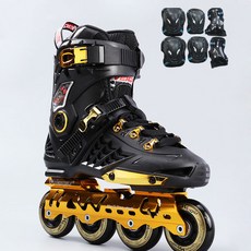 인라인스케이트 뉴타입 성인 직배열인라인바퀴 플라워 롤러스케이트 바퀴신발 반짝반짝 성년 남녀 스케이트화 1열 세트포장, C15-뉴타입 블랙골드+보호대
