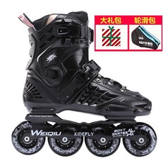 인라인스케이트 뉴타입 성인 직배열인라인바퀴 플라워 롤러스케이트 바퀴신발 반짝반짝 성년 남녀 스케이트화 1열 세트포장, C16-뉴타입 블랙골드+보호대 숄더백