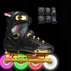인라인스케이트 뉴타입 성인 직배열인라인바퀴 플라워 롤러스케이트 바퀴신발 반짝반짝 성년 남녀 스케이트화 1열 세트포장, C18-뉴타입 블랙골드(라이트)+보호대