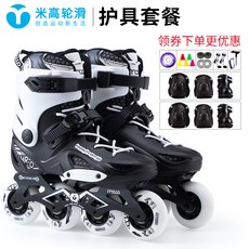 인라인스케이트 .남아 미터높이 스케이트화 성년 성인 롤러스케이트 바퀴신발 남녀, C05-화이트 보호대 세트포장