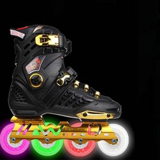인라인스케이트 뉴타입 성인 직배열인라인바퀴 플라워 롤러스케이트 바퀴신발 반짝반짝 성년 남녀 스케이트화 1열 세트포장, C17-뉴타입 블랙골드(라이트)