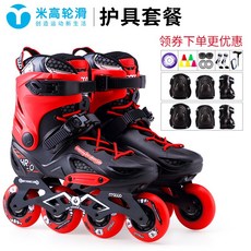 인라인스케이트 .남아 미터높이 스케이트화 성년 성인 롤러스케이트 바퀴신발 남녀, C06-레드 보호대 세트포장