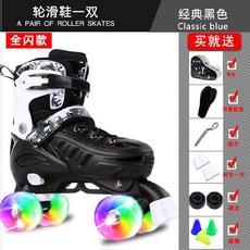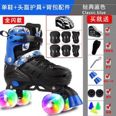 인라인스케이트 여자아이 젊은느낌 스트릿 롤러스케이트 바퀴달린 두바퀴 스케이트화 성인 초보자, C09-블루 발광아님(신발+보호대+헬멧)배낭증정