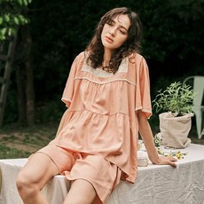 글램공감 국산순면 엑시 반팔 롱원피스 홈웨어 여름파자마