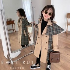 유아 키즈 어린이 아동 옷 남아 여아 상하복 아동복 여아 겨울 신상품 한국판 중기장 얇은 면 케이프 체크 트렌치코트