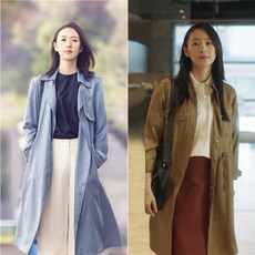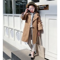 생활도움 홍콩 여성복 30수 아동용 쇼케이스 트렌치 코트 중 긴 기장감의 루즈핏은 무릎 두께감보다 날씬해 보이는