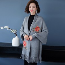 여자케이프코트 여자숄더 2018뉴타입 가을겨울 캐시미어 외투 카디건 소매있는 망토형 두꺼운 보온 치파오 밖에걸쳐입는스타일