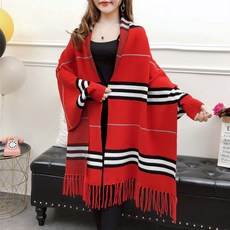 여자케이프코트 가을겨울 체크 목폴라 풀오버 두꺼운 케이프 숄 외투 니트 돌먼슬리브블라우스 루즈핏 오버사이즈 털옷 여성