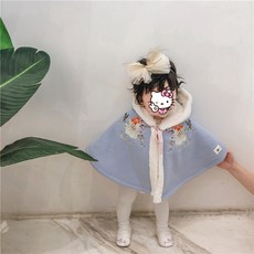 여자케이프코트 망토 케이프 아동타입 고대의상 차이나스타일 자켓 기모 여신 여자아이 가을겨울 보온 후드 숄
