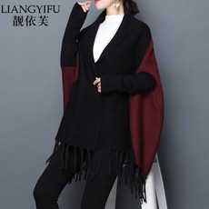 여자케이프코트 2018봄가을 뉴타입 여성패션 니트 미들롱타입 케이프 박쥐 숄 털옷 가을겨울 외투 상의 유행