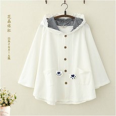 위파인더 여 학부 학과일 가을 룩으로 모리 후드 박시 코트 아동 취향 학생 귀가 여려서 소녀를 감미로운 케이프 코트를 짓고 있다. 여동