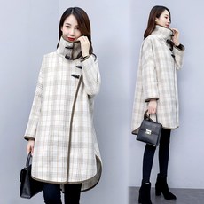 여자체크코트 뿔단추 체크 미지물외투 오버사이즈 여성패션 가을겨울 뚱뚱한 mm루즈핏 날씬해보이는 A지면으로 케이프 모직코트