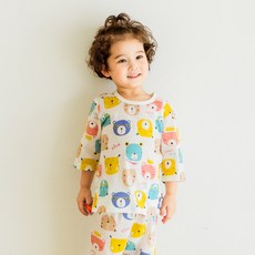 [키키스토리] 아동용 베어페이스 30수 긴팔 실내복 상하의세트