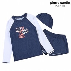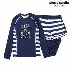 피에르가르뎅 피에르가르뎅 키즈 라인패턴 배색 래쉬가드 세트 (G4625-NA)