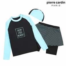 피에르가르뎅 피에르가르뎅 키즈 스트라이프 배색 래쉬가드 세트 (G4723-BK)