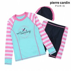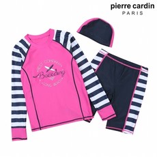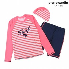 피에르가르뎅 피에르가르뎅 키즈 라인패턴 배색 래쉬가드 세트 (G4625-PK)