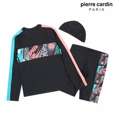 피에르가르뎅 피에르가르뎅 키즈 유니크 배색 래쉬가드 세트 (B3827-BK)
