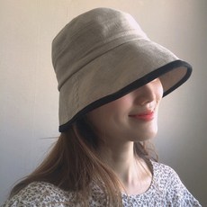 라렌트리 / 라인 배색 린넨 기본 벙거지 모자 버킷햇 (2color)