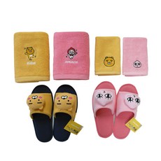 카카오프렌즈 기프트 세트 세면타월 150g 2p + 매트 슬리퍼, 라이언, 1세트