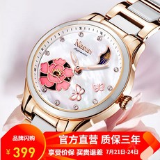 니상 (Nesun) 여성시계 전자동기계식 조미용 도자기 여성 시계 야광패션국표 연못 달빛 9071 메금 백면 도자기