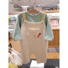 [현대백화점][밍크뮤]SC (BE)쁘띠캐롯니트오버롤+(MN)레터링자수티셔츠 2021SS 니트바지 상하복 티셔츠 311