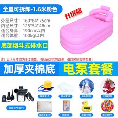 반신욕기 빅사이즈 에어욕조 가정용 욕조 성인 접이식의자 샤워통 전신, 업그레이드 된 1.6M 분홍색 전기 펌프 패키지개